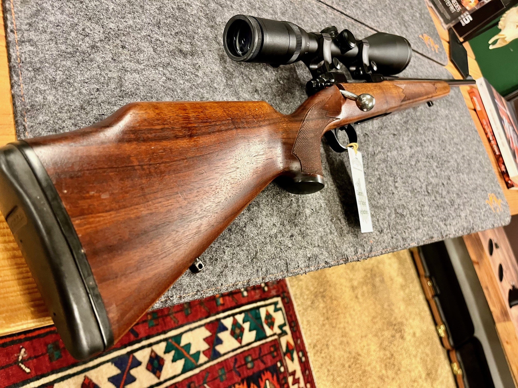 Riflen har få brugsspor og skyder fantastisk, her i det meget fladt skydende kaliber .22-250REM, der blev udviklet til specialstyrkerne fra Australian Special Air Service Regiment.